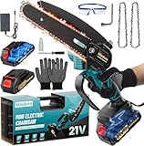 2MioduroMini Motosega a Batteria per Potatura, Motosega Elettrica con 8000mAh Batterie, 6 Pollici Sega a Batteria con con Blocco di Sicurezza e Motore Potente per il Taglio del Legno e il Giardinaggio